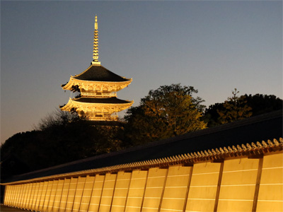 翌日は招待券をいただいていた東寺の境内ライトアップを観に行きました。