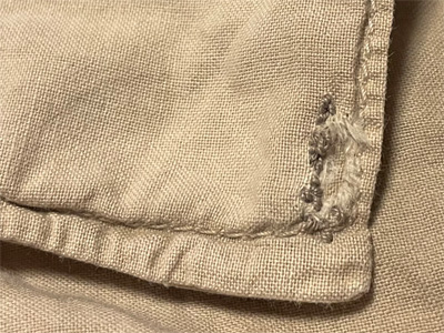 普段はいているチノパンツのポケット内側の布が破れてきたので、とりあえず繕いました。