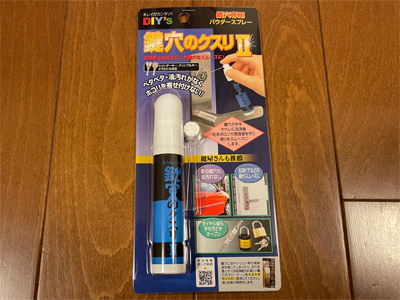 以前にも一度購入してここに書いた気がしますが、 鍵穴に注入するとドライなパウダーによって内部がサラッサラになって、カギの通りが驚くほどスムースになる優れモノです。