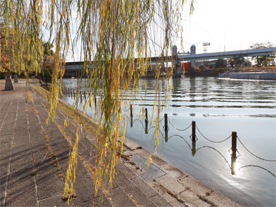 柳と水面と光の風情を撮ってみました。広角レンズは背景にゴチャゴチャと情報が映り込むのが難しいところですねえ。