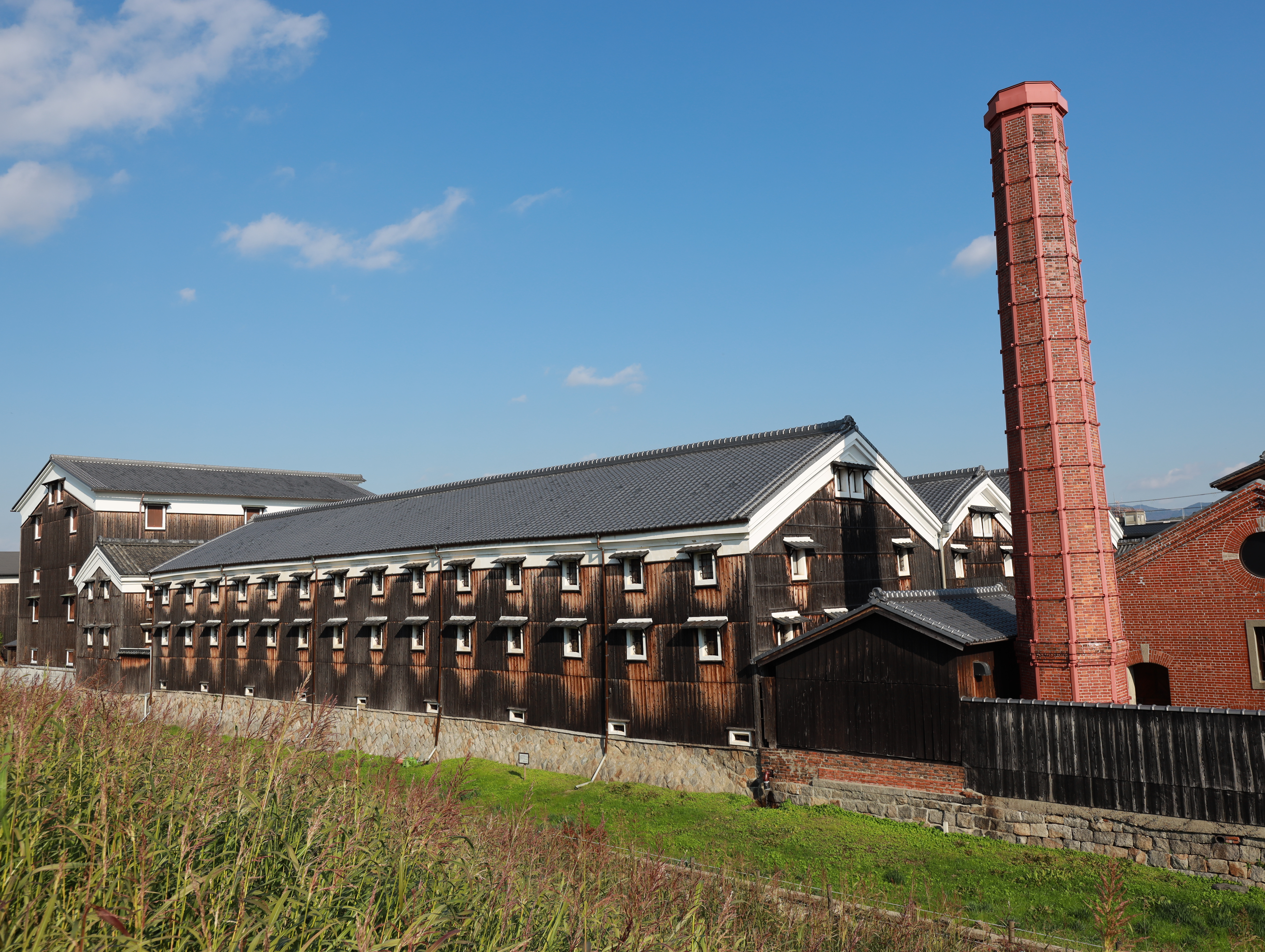 まずは松本酒造の酒蔵を、スマホ(iPhone12)と一眼レフ+広角レンズの同じ画角で撮り比べてみました。