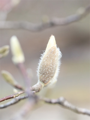 モクレンのつぼみでしょうか。もけもけしていて可愛らしい。