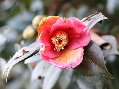 朽ちつつある椿の花は少々怖い雰囲気です。