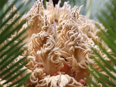 翌日は近所を散歩。ソテツの雌花が咲いていました。