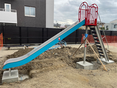 近所の公園のすべり台が新調されているところです(現在進行形)。