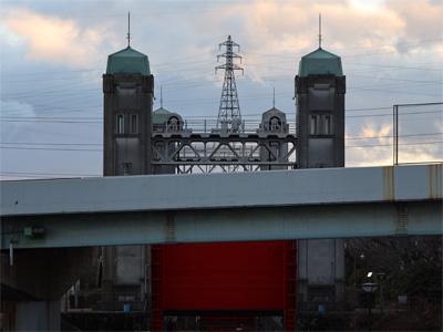 中書島の水門。いつ見てもカッコイイです。