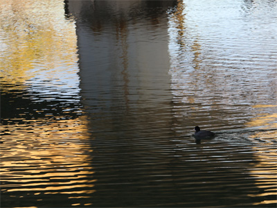 川に鴨が泳いでました。