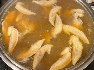 ラーメンのスープを仕込んでます。