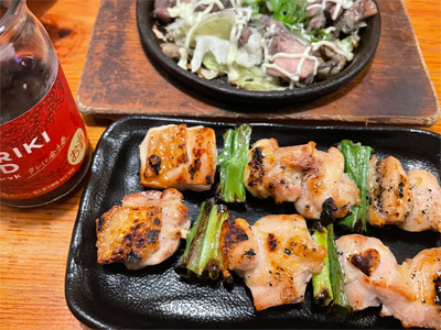 安楽時からの帰りに鳥貴族にて、焼き鳥その他でワイン飲み。