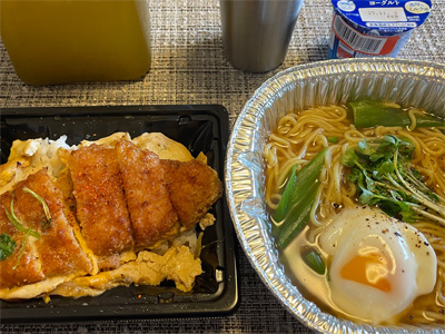 翌日はスーパーのカツ丼と、かんたんラーメン。