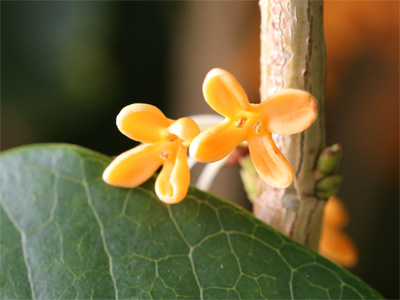 この時期、キンモクセイの花がいい匂いを漂わせていますが、マクロレンズで撮るとこんな感じになります。