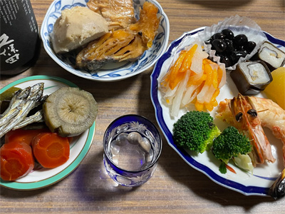 元日は実家に帰って、夕食におせちで日本酒をいただきました。